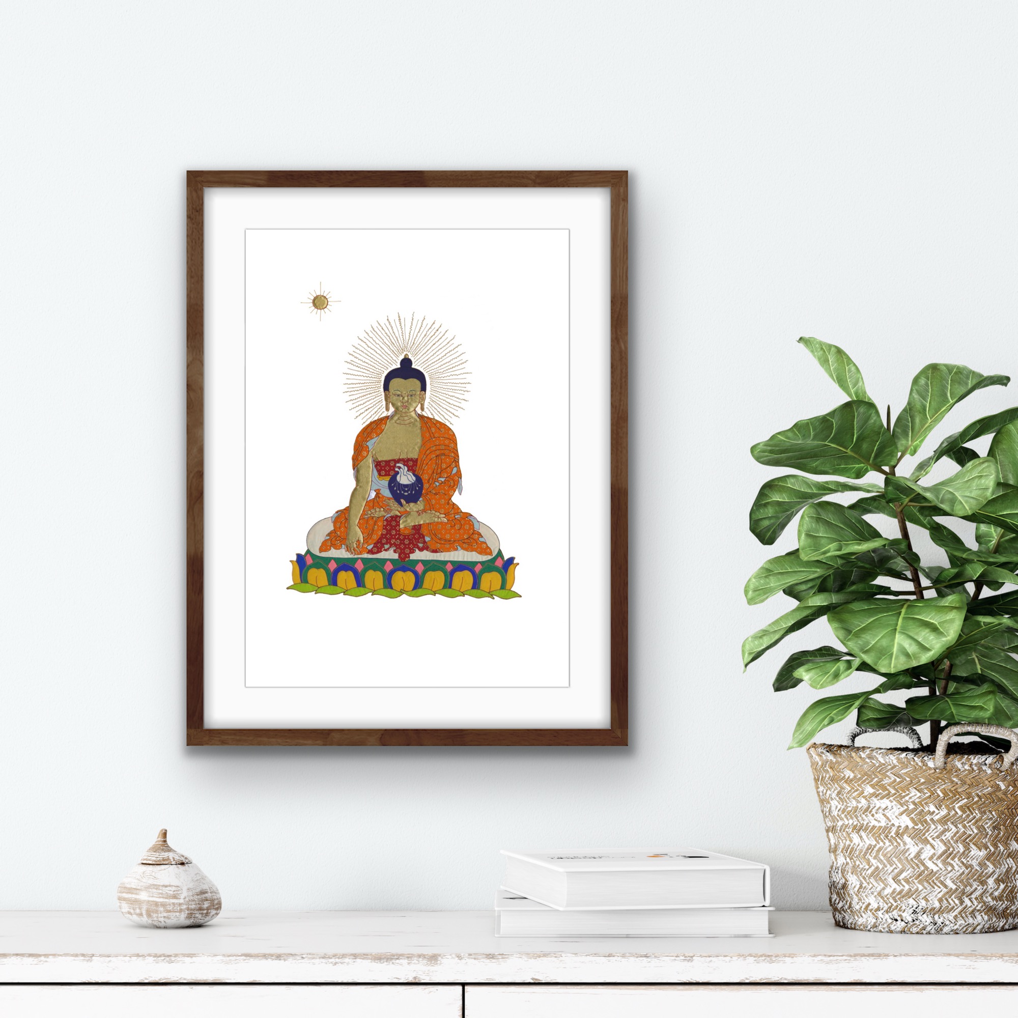 These prints are drum-scanned from Urgyen Sonam’s original silk appliqué thangka artworks and printed on the finest archival Giclée fine art paper (260gsm), ensuring exceptional resolution and a lifespan of up to 100 years.